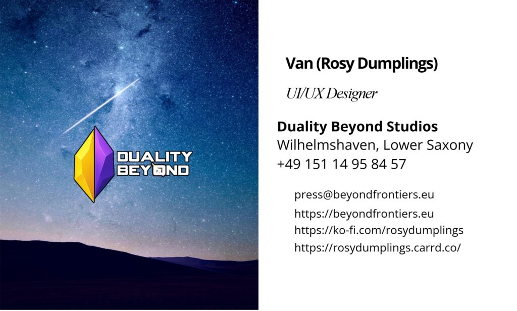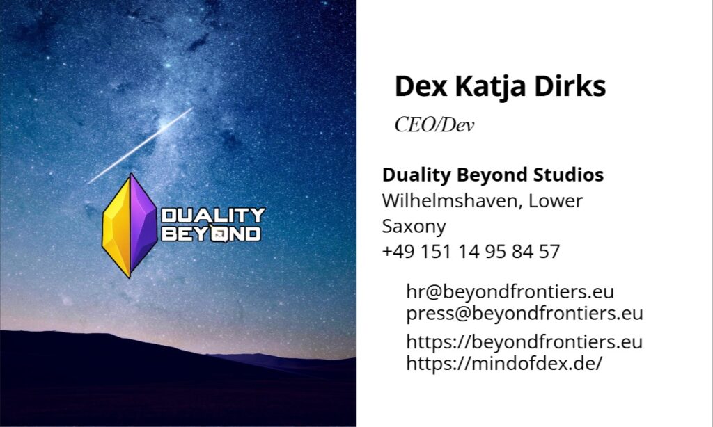 Duality Beyond Studios is a Germany-based indie game development studio powered by a passionate international team. Founded and led by CEO Dex Katja, who is disabled and an established member of the LGBTQ+ and VTuber communities, DBS is committed to fostering an inclusive and creative development environment.