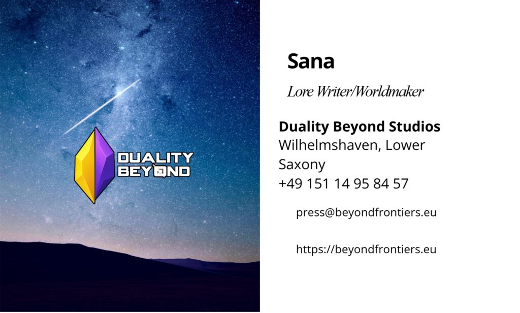 - Sana: Secondary Lore Writer/Worldmaker (Canada) – Assists Chael in writing crucial in-game story for ‘B.F’